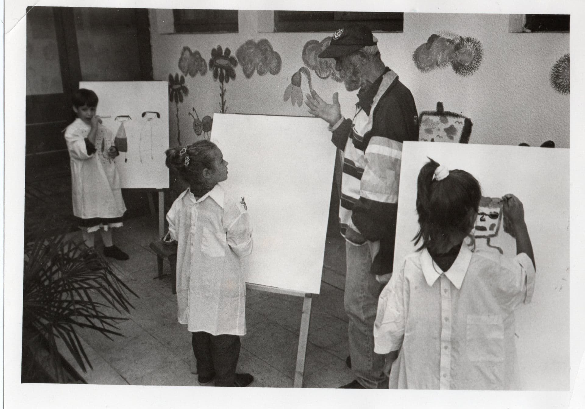 Uroš Tošković u jednom francuskom gradiću (FOTO: Arhiva Pobjede)Ovim povodom zavirili smo u bogatu arhivu našeg lista i pronašli zanimljive fotografije koje svjedoče o različitim životnim i stvaralačkim trenucima Uroša Toškovića. Među njima je i fotografija iz 1976. godine na kojoj se umjetnik potpisao i ostavio kratku posvetu: „Redakciji ‘Pobjede’ prijateljski – 22. 11. 1976“, uz svoj prepoznatljivi, gotovo kaligrafski potpis. U arhivi se nalazi i fotografija iz 1979. godine, koja bilježi razgovor Veselina Đuranovića i Vidoja Žarkovića sa Toškovićem, tokom izložbe njegovih djela u Beogradu 1979. godine, dok druga, nastala 1999. godine, prikazuje umjetnika tokom posjete vrtiću „Ljubica Popović“, gdje je, okružen djecom, na sebi svojstven način razgovarao sa najmlađima.