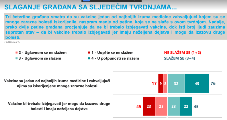 Procenat onih koji nisu saglasni s tvrdnjom da su vakcine jedan od najboljih izuma medicine i da su zahvaljujući njima iskorijenjene mnoge zarazne bolesti smanjio se sa 22 odsto u oktobru na 17 odsto u decembru.