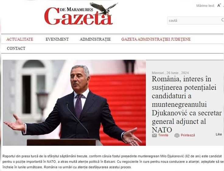 U tekstu se analizira da ,,dosta političke pažnje na Balkanu privuklo je pisanje turskih medija da je jedan od kandidata za visoku funkciju u NATO i bivši crnogorski predsjednik Milo Đukanović (62)“, uz napomenu da je za Rumuniju vrlo interesantno kako teče ovaj proces.