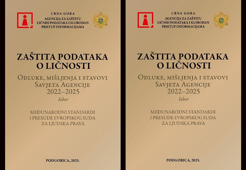 Objavljeno edukativno štivo „Zaštita podataka o ličnosti (Odluke, mišljenja i stavovi Savjeta Agencije 2022-2025, Izbor)“