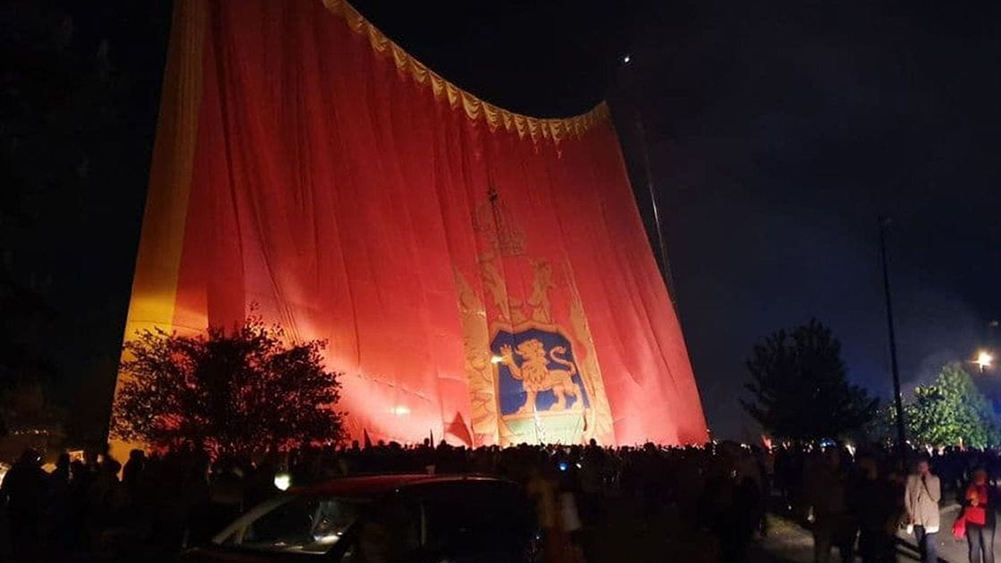 Na Cetinju je sinoć, povodom 15 godina od obnove nezavisnosti, podignuta najveća crnogorska zastava. Zbog težine od 700 kilograma, podignuta je iz trećeg puta, a organizatorima na ruku nije išao ni vjetar, koji je u jednom momentu iscijepao.
