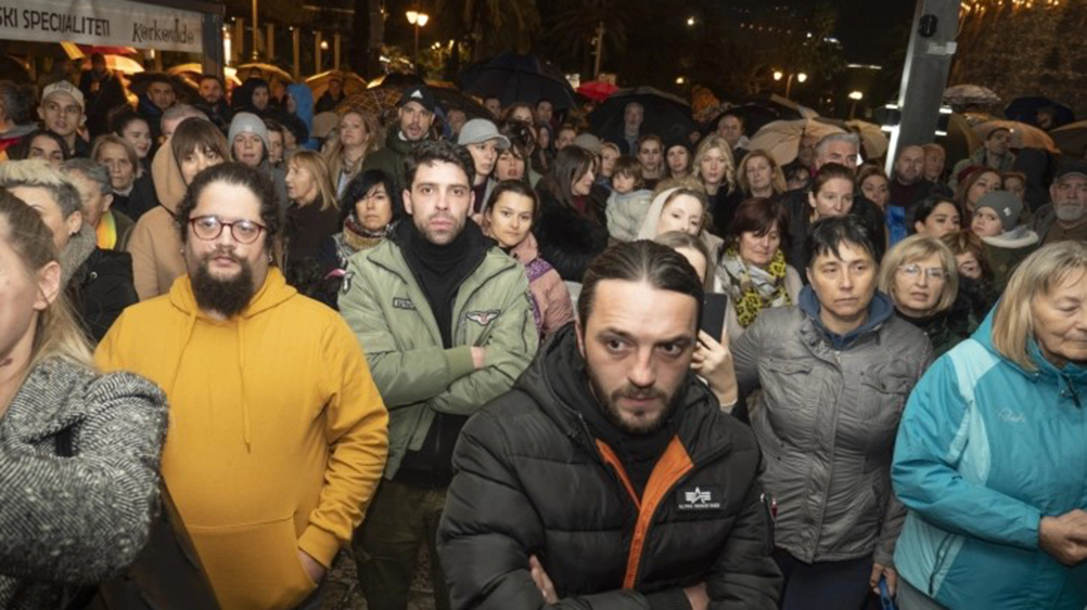 Nekoliko stotina građana okupilo se večeras ispred zidina Starog grada u Budvi na protestu Sindikalne organizacije Hotelske grupe (HG) Budvanska rivijera protiv plana restrukturiranja tog preduzeća.