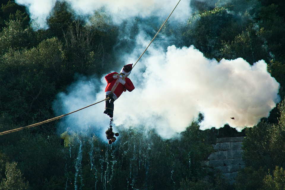 Igre, kola i svečanosti su se te 1715. godine održale u nedjelju poslije podne 3.ožujka (prije korizme) na peraškoj pjaci u znak veselja što je oglašen početak rata Venecije sa Osmanlijama. Tada je bio dovezen jedan vašel (brod) pod pjacu 60 lakata daleko od kraja pa se sa pilastara zvonika protegao konop do vašela i dobro zategao. Postavljena je zatim lutka koja predstavlja nevjernika sa turbanom, a u njemu umjetne vatre. U određeni sat od strane Penčića izašao je neko odjeven kao general sa svoja dva savjetnika i velikom pratnjom krabulja sa zastavom i šest kopljanika i dva paža i drugim časnicima kako zahtjeva služba. Slijedio je zatim jedan stari običaj susreta generala i kćerke sve popraćeno sa plesom praćenim cimbalima, kitara i bubnja. Sve završava letom lutke sa pilastra zvonika, gdje su zvona, do vašela po konopu označenim pravcem, a kad dovrši let, udarit će pifare i bubanj sa općim klicanjem i sedam hitaca.Na kraju se zapalila figura nevjernika sa turbanom i opalile su se rakete sa zvonika uz pucanje, udaranje bubnja, pifara i gitara.
