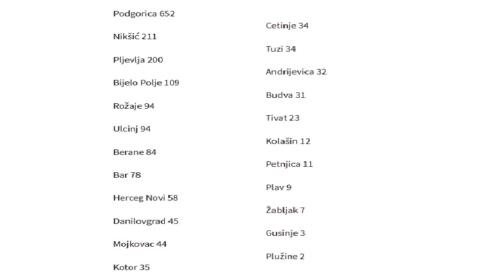 Preminula je po jedna osoba iz Nikšića, Andrijevice i Herceg Novog, od kojih je najmlađia imala 58, a najstarija 72 godine.