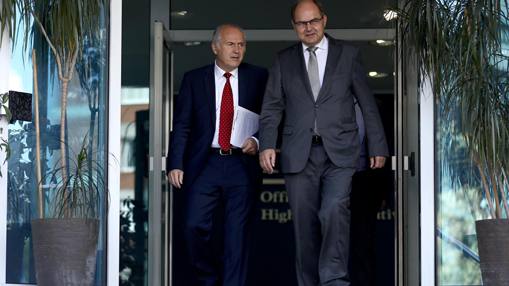 02.08.2021., Sarajevo, Bosna i Hercegovina – U zgradi OHR-a odrzana je primopredaja duznosti izmedju novog visokog predstavnika Christiana Schmidta i bivseg Valentina Inzka. Valentin Inzko i Christian Schmidt.