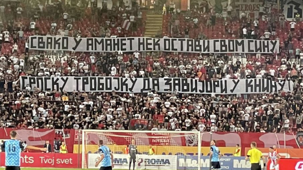 Najverniji navijači Zvezde na sjevernoj tribini razvili su sinoć transparent povodom godišnjice od progona srpskog stanovništva iz Hrvatske.